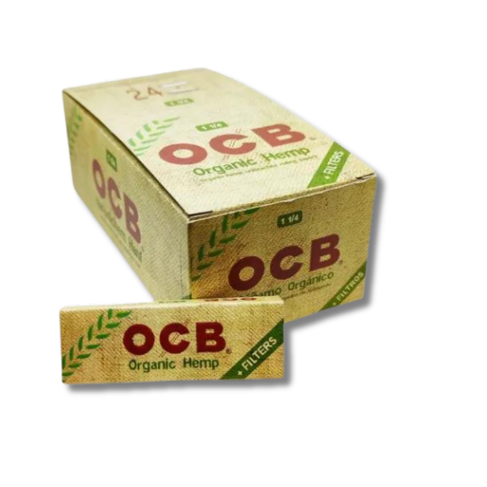 - Caja con 24 libritos OCB Cañamo Orgánico de tamaño 1 1/4 + Boquillas OCB sin blanquear